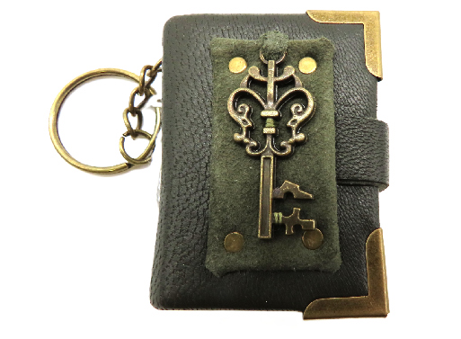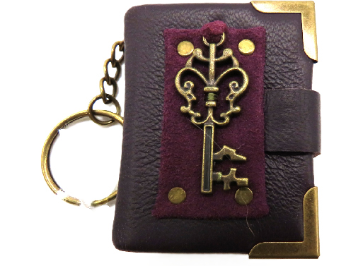Un porte-clés mini livre du moyen-âge avec un décor de clef et idéal comme une décoration de porte-clés cadeau ou souvenir du château de Saint Mesmin.